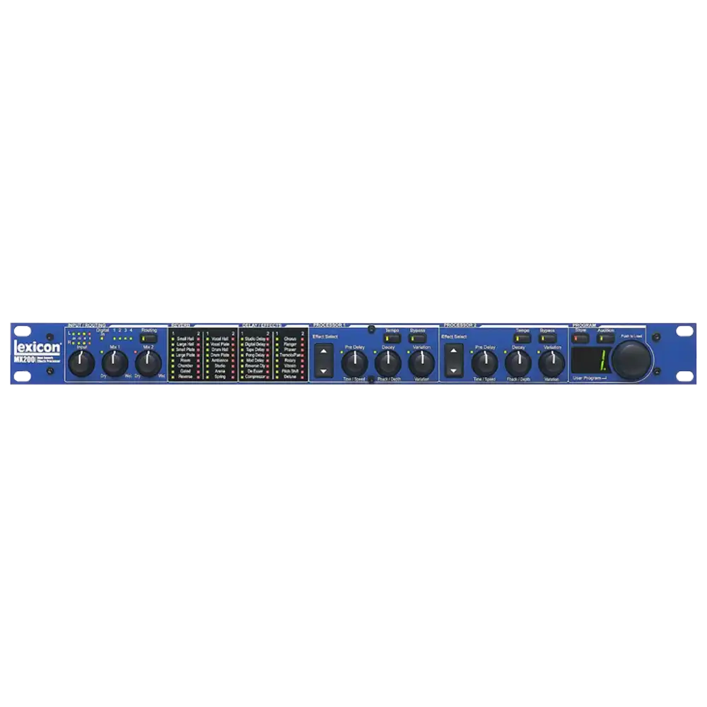 The Lexicon 200 Reverbs is a versatile compressor/limiter/gate, designed to provide comprehensive dynamic control for a variety of audio sources. Its transparent compression and reliable gating make it ideal for both live sound and studio applications, ensuring your audio remains balanced and free of unwanted noise.