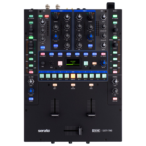 The Rane Sixty-Two is a versatile, high-performance DJ mixer designed for use with Serato DJ software. With dual USB ports for easy DJ handoffs, extensive effects, and robust build quality, the Sixty-Two is built to withstand the demands of professional use. It features intuitive controls, including performance pads, precision crossfaders, and comprehensive connectivity options. The mixer’s high-quality sound and versatile functionality make it a favorite among club DJs and battle DJs alike.